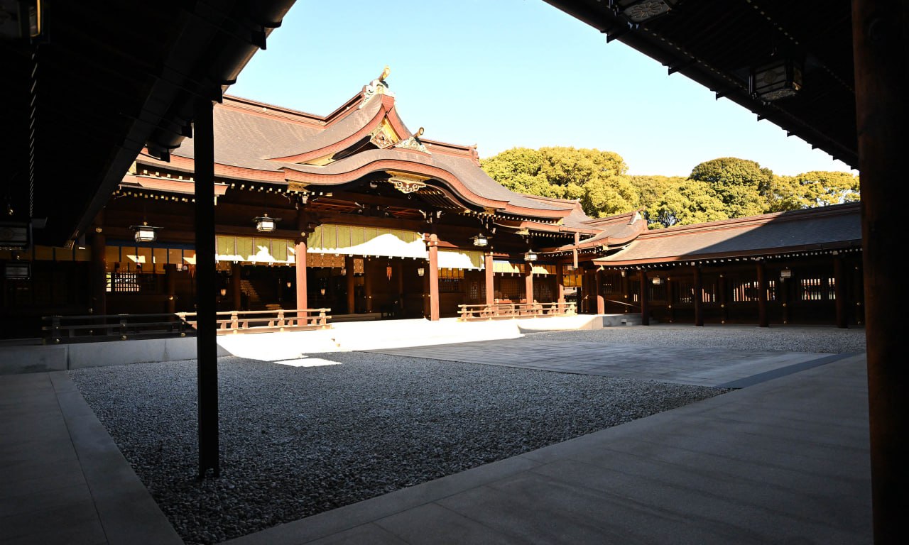 Храм посвящен императору Мэйджи, чье правление было ознаменовано глубокими политическими и социально-экономическими реформами, благодаря которым Япония превратилась в одну из наиболее развитых стран мира.