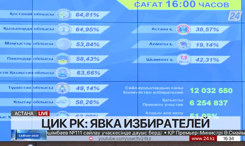 ЦИК сообщает, согласно данным, представленным территориальными комиссиями, по состоянию на 16:00 явка граждан в регионах составила: