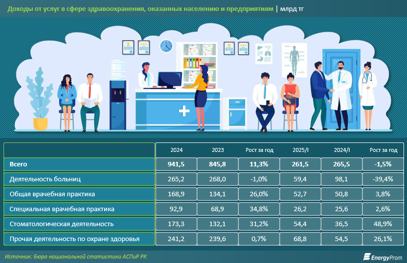 Что касается частной медицины, в которой участие государства минимально, здесь этот принцип уже не сработал. Поэтому, как и годом ранее, в первом квартале 2025-го был отмечен значительный рост доходной части. Например, доходы от стоматологической деятельности выросли на 48,9%, от прочей деятельности по охране здоровья — на 26,1%.