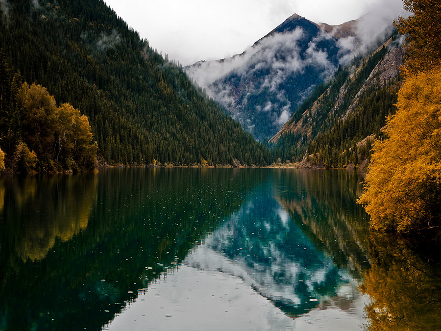 Озеро Каинды – одно из самых красивых мест Казахстана. Расположено оно в ущелье Кенгей-Алатау и образовалось в 1910 году в результате землетрясения. Оползни перекрыли горное ущелье, которое наполнилось родниковой водой, утопившей живой хвойный лес. Высокие деревья не полностью были покрыты водой – их верхушки торчали над озером, получив от местных жителей название Стражи.