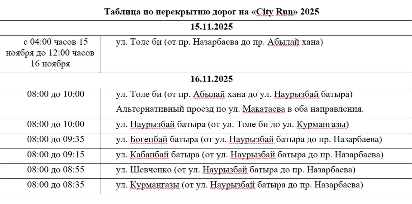 City Run: какие улицы перекроют в Алматы
