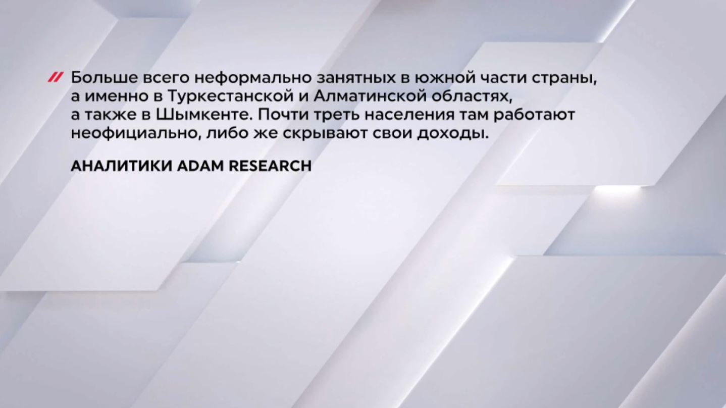 По официальным данным Нацстатистики, в прошлом году в Казахстане насчитывалось больше миллиона неформально занятых казахстанцев. Из них большинство, то есть примерно 700 тысяч человек, работали на легальных предприятиях, но без трудового договора. За последние три года их число выросло почти на 4%. Меньшая часть работников теневой экономики трудится на работодателя без патента, лицензии или регистрации. Речь идёт о тех, кто оказывает услуги, производит товары, но при этом не платит налоги, скрывает свою детальность. Они занимают примерно 13% от общего числа всего трудоспособного населения.