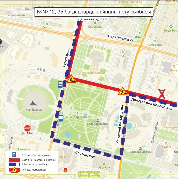 С 19 февраля по 30 октября изменится схема движения маршрутов №№ 12, 29, 29А, 35, 305, 312, следующих по улице Динмухамеда Конаева, передает «24KZ» со ссылкой на официальный сайт акимата Астаны.